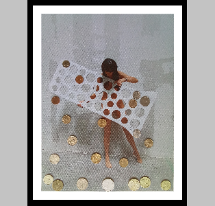 mixed-media assemblage: unprocessed digital photography printed on slightly structured canvas on a wooden frame, with 2 picture eyelet hooks each, individual pieces, unframed, plus matching framing on request
